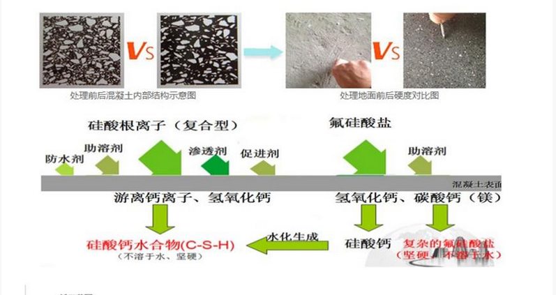 (1)硅钙凝胶填堵孔隙,增加结构密度,大大增强混凝土的硬度和耐磨性。